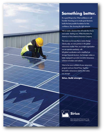 Designing for results is what we did with a series of ads for White Mountains Re America, one the world's leading reinsurance organizations, when the company changed its name to Sirius American Insurance Company. The theme of these ads, "Sirius. Build stronger." highlighted Sirius’ commitment to providing their clients with innovative reinsurance products.
